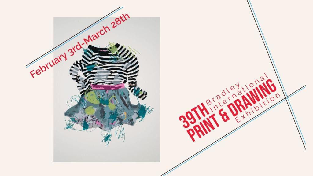 The Bradley International Print and Drawing Exhibition is the second-longest running juried print and drawing competition in the country. Every two years it features the best contemporary graphic artwork from around the globe. This exhibition will be featured in two campus galleries at Bradley University: Heuser Art Gallery and Hartmann Center Gallery. The show will also extend to other venues downtown: The Peoria Riverfront Museum and The Peoria Art Guild.