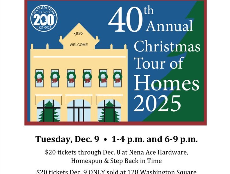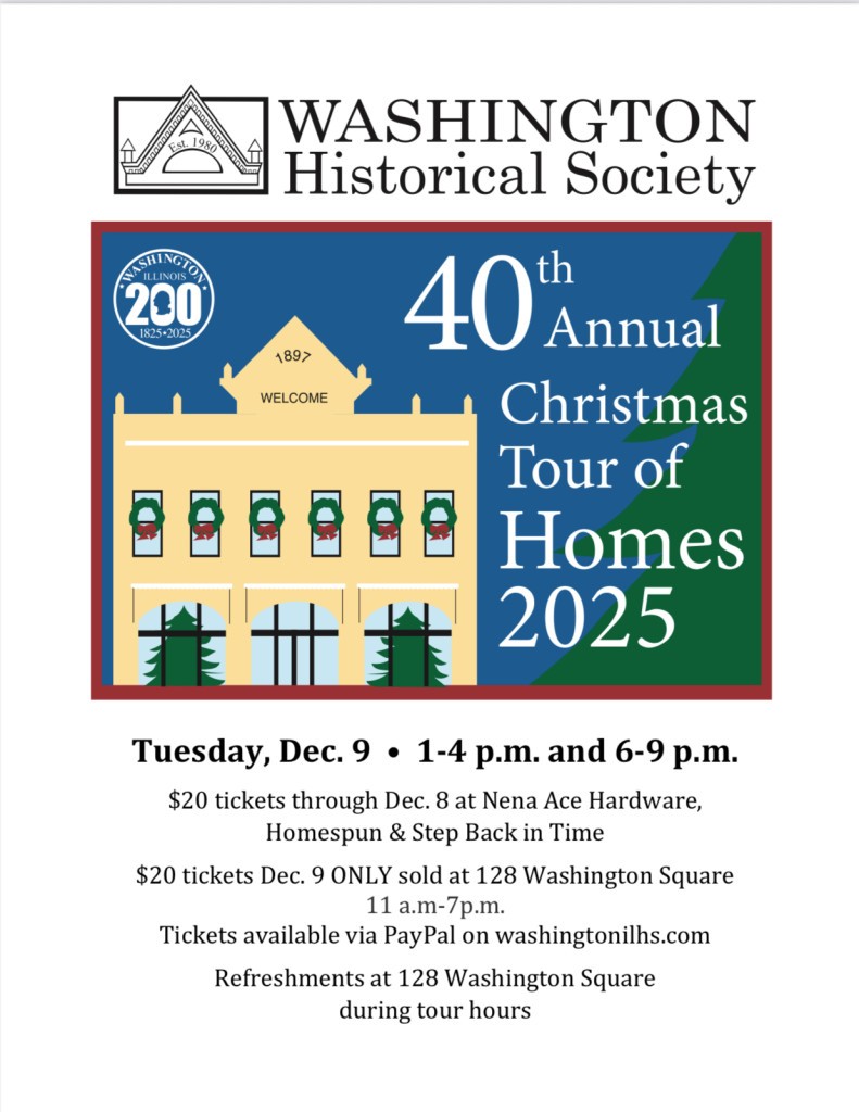 Join us for the Washington Historical Society's 40th Annual Christmas House Tour of Homes! Tickets are available at Homespun, Nena Hardware, Step Back in Time, and online at www.washingtonilhs.com. Grab your friends and come enjoy five Washington homes beautifully decorated for Christmas.
