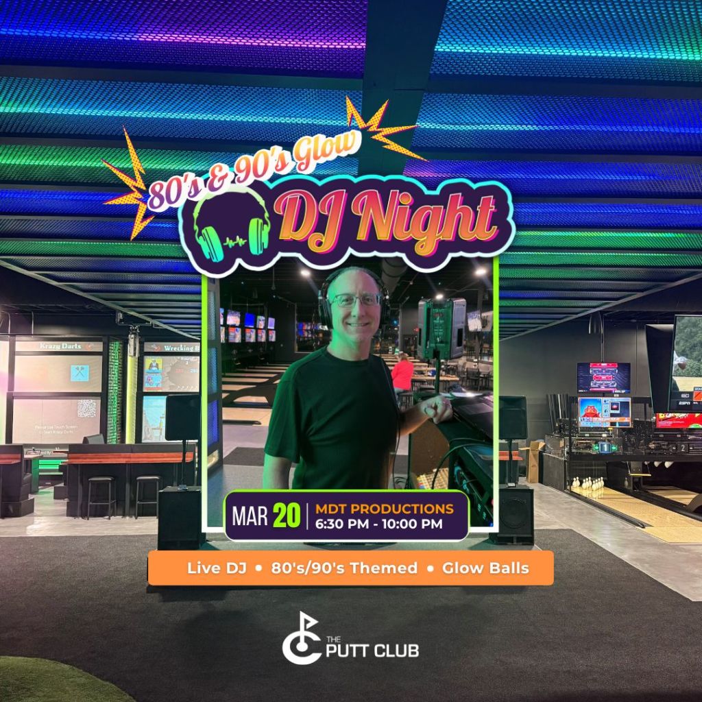 Looking for a totally rad night out? Join us at The Putt Club for throwback hits, retro fun, and glow-in-the-dark golf balls!