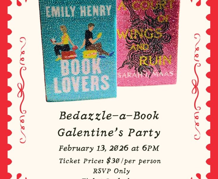 Join us for two hours of bedazzling fun and creative sparkle! Each ticket includes a complete bedazzling kit featuring a rainbow assortment of rhinestones, glue, and application tools—yours to use during the event and take home to keep the creativity going (or bedazzle even more books!).