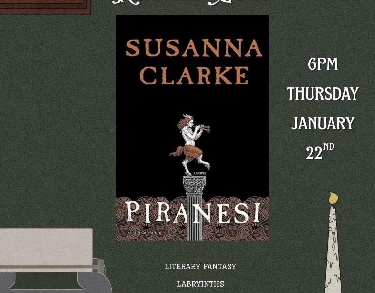Let's discuss Piranesi by Susanna Clarke! First timer? All you need to do is read the book, come inside and get a drink if you'd like, and find a comfy spot with the group.