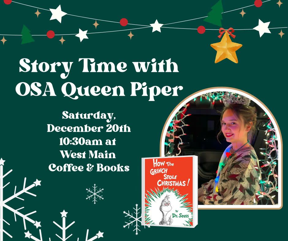 Miss OSA Teen Queen Piper will be reading the Christmas Classic "How the Grinch Stole Christmas".