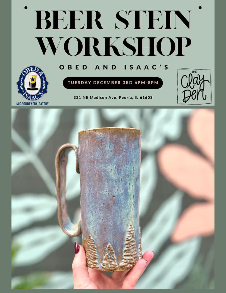 Join us for a unique craft experience at Obed and Isaac’s Brewery! In this hands-on workshop, you’ll create your very own hand-built clay beer stein while enjoying the cozy atmosphere of the brewery. Perfect for beginners and seasoned crafters alike, our skilled instructor will guide you through the process of shaping, designing, and personalizing your stein. Once completed, your masterpiece will be fired and glazed, ready for you to pick up and enjoy your favorite brews in style. Grab a drink, get creative, and make memories at this one-of-a-kind event!