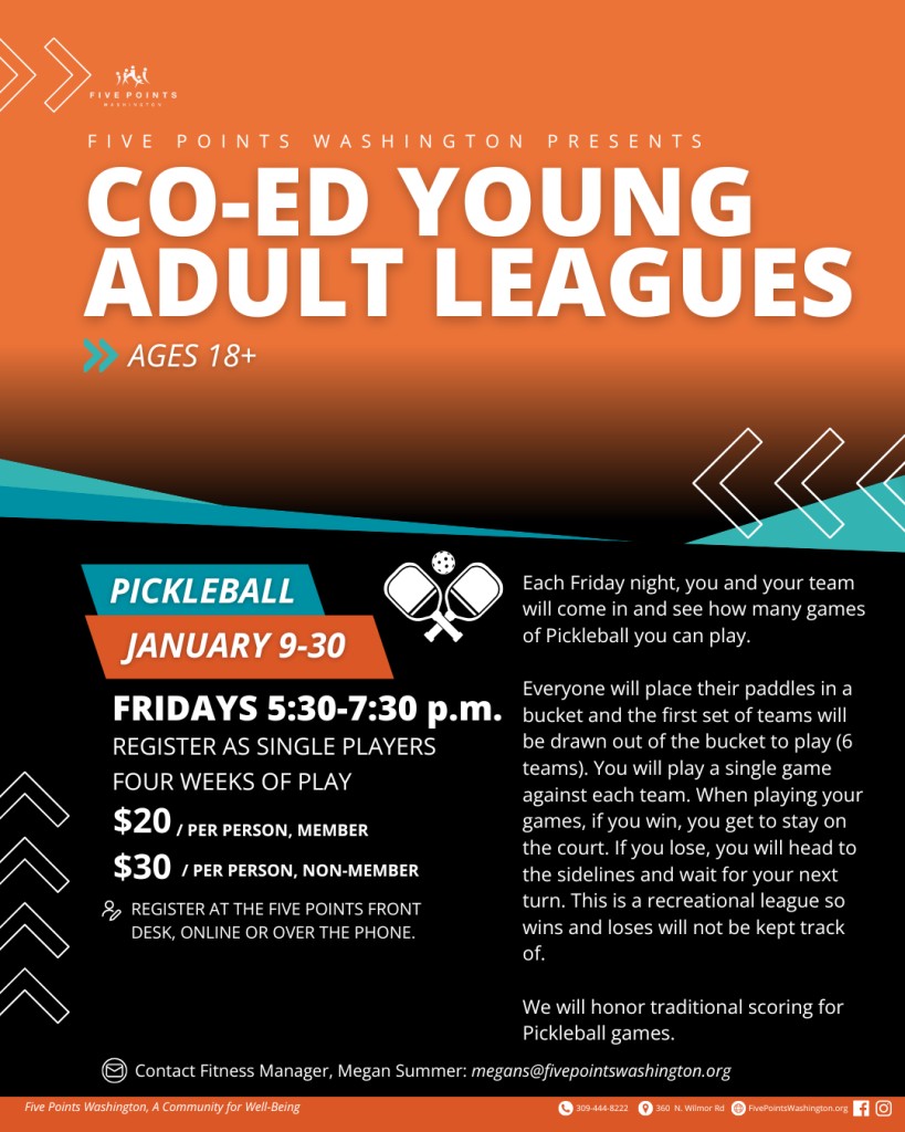 Back again for our second year, we are hoping to see many returning faces as well as some new ones for our Five Points Washington Co-Ed Young Adult Leagues! Throughout the winter, we will offer four recreational leagues, on Friday evenings, to get you and your friends up and active. These leagues are open to anyone 18-years and older. These co-ed leagues are a great way to meet some new friends and stay active during the winter. You do not have to be a Five Points Member to join in our Young Adult Leagues.