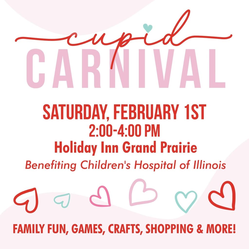 Join us for our second Cupid Carnival benefiting Children's Hospital of Illinois! We are so excited to put this event together and bring all your kiddos and families together for a day of Valentine's fun for a great cause! Please note this is for our Saturday, 2:00-4:00 party session.