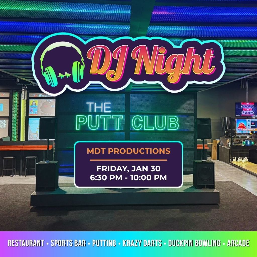 Looking for the perfect night out with friends, family, or that special someone? Join us for DJ Night at The Putt Club!Live DJ, Delicious Food & DrinksIndoor Putting, Krazy Darts, Duckpin Bowling, Arcade GamesRound up your crew and let the good times roll!