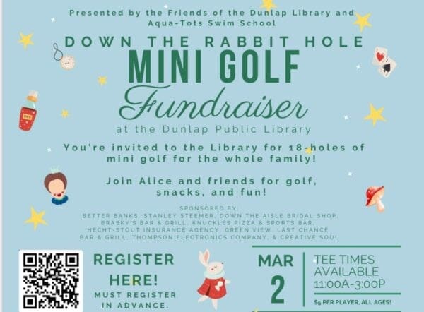 You’re invited to the Library for 18-holes of mini golf for the whole family! Join Alice and friends in the Library for golf, snacks, and fun!