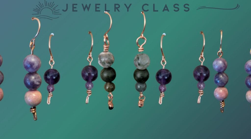 The $45 per person class fee includes all supplies, instruction and wine sampling of three wines for 21+ attendees. In-person class includes: Instruction and materials to make 2 copper and stone earring pairs. Payment is due when registering and all attendees must register and make payment in advance for this class experience.