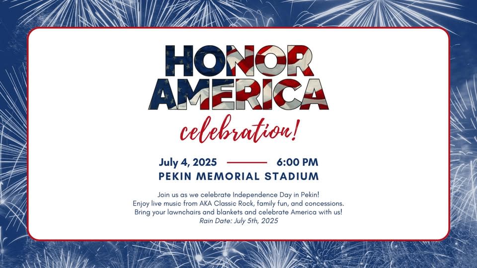 Join us as we celebrate Independence Day in Pekin! Enjoy live music from AKA Classic Rock, family fun, and concessions. Bring your lawn chairs and blankets and celebrate America with us! Rain date: July 5th,2025