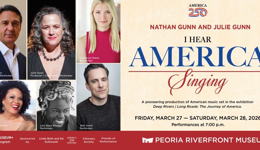 Experience “I Hear America Singing” – A Musical Journey Through 250 Years of Liberty Presented by Shot in the Dark Productions | A Signature America 250 EventAs part of the Peoria Riverfront Museum’s commemoration of America 250, we are proud to present I Hear America Singing, an original performance created in partnership with Shot in the Dark Productions. This two-performance celebration brings America’s story to life through the power of song—honoring 250 years since the signing of the Declaration of Independence. This is the inaugural performance of a show that will go on to travel as a gift to the nation to celebrate 250 years of America, and share our music with the next generation. This pioneering performance adds the voices of Americans from various walks of life to a reading of the Declaration of Independence, then combined with the performance itself. Presented in conjunction with the centerpiece of the Peoria Riverfront Museum's celebration of America 250, The Promise of Liberty, guest curated by acclaimed documentarian Ken Burns, this performance also complements a landmark exhibition featuring the largest assemblage of American historical documents ever shown on this scale. Visitors will encounter extraordinary artifacts, including a 1776 copy of the Declaration of Independence, an Emancipation Proclamation signed by Abraham Lincoln, and the manuscript of Dr. Martin Luther King Jr.’s iconic “I Have a Dream” speech.Inspired by Walt Whitman’s famous poem, I Hear America Singing weaves together a dynamic collection of music that reflects the nation’s evolving pursuit of liberty and the promises set forth in 1776. From traditional spirituals and work songs like “Deep River” and “Bound for the Promised Land,” to the works of celebrated composers and songwriters such as Paul Simon, Charles Ives, Jason Robert Brown, and Stephen Schwartz, this performance traces the American journey toward freedom, unity, and hope.Echoing the voices of Whitman, Lincoln, Langston Hughes, Dr. King, and generations of Americans striving toward a more perfect union, this musical evening invites audiences to reflect, remember, and reimagine the nation’s ongoing quest to fulfill the ideals of its founding.This signature performance will also be accompanied by Deep Rivers | Long Roads: The Journey of America . This special two month-long exhibition of Americana celebrates the nation’s path toward its own “promised land”—a vision carried forward not only by those who came before us, but by those who will follow.This performance is made possible through the generous support of Linda Beth and Ed Sutkowski, whose sponsorship powers the museum’s MUSEUM+ initiative—a bold commitment to expanding performance, arts, and cultural experiences for the people of central Illinois.Join us for two unforgettable performances where history, music, and hope converge—and hear America singing anew.Sponsored by Linda Beth and Ed Sutkowski, America 250 donors, Visionary Society, Friends of Performance.