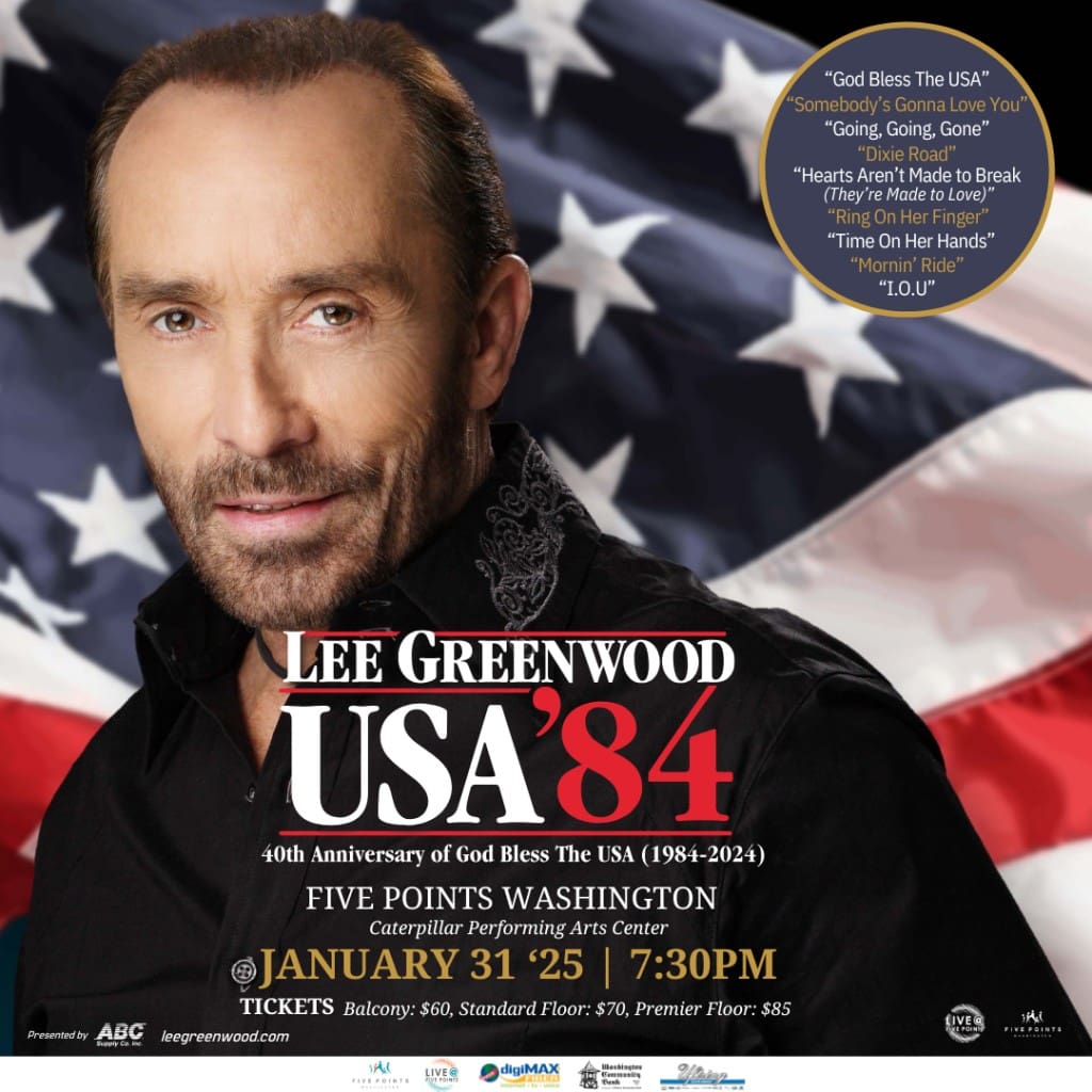Lee Greenwood’s 40th Anniversary Tour of the hit song “God Bless The USA” is coming to Five Points Washington.