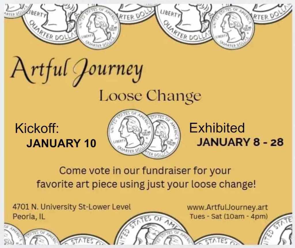 Each of our resident artists (23) has the opportunity to submit one piece of art for the spotlight area for the month of January. These artworks will have numbers assigned to them and you, the public, can vote for your favorite using loose change from your pockets, purse, or car.Please come & vote, and yes these pieces will also be for sale.