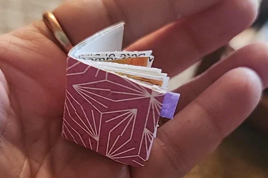 Ruth will show you how to make the tiny book that fits in the palm of your hand. Give as a gift, or make as an Ornament!