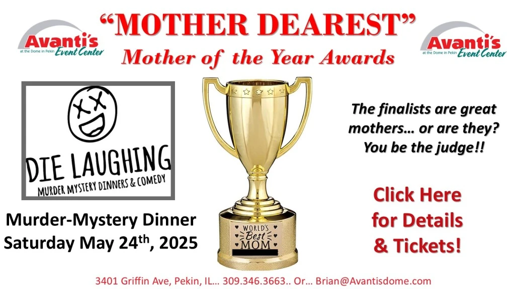 Join us for an evening of Mystery, Murder, and Dinner! Presented by Die Laughing Entertainment!"MOTHER DEAREST": The nominations have been tallied and 3 finalists announced. Now it’s time for the annual Mother of the Year Banquet with the winner to be selected and presented with the Mother of the Year award! The finalists are most certainly great mothers…. or are they? You be the judge. Be prepared to unleash your inner sleuth as something is about to go dreadfully, or should we say “deadfully” wrong at the Mother of the Year Banquet!This audience-interactive murder mystery will create an evening of conspiracy, mystery, and drama. It is up to you to find the murderer! Feel free to dress like you are going to the Oscars... or any way you wish!
