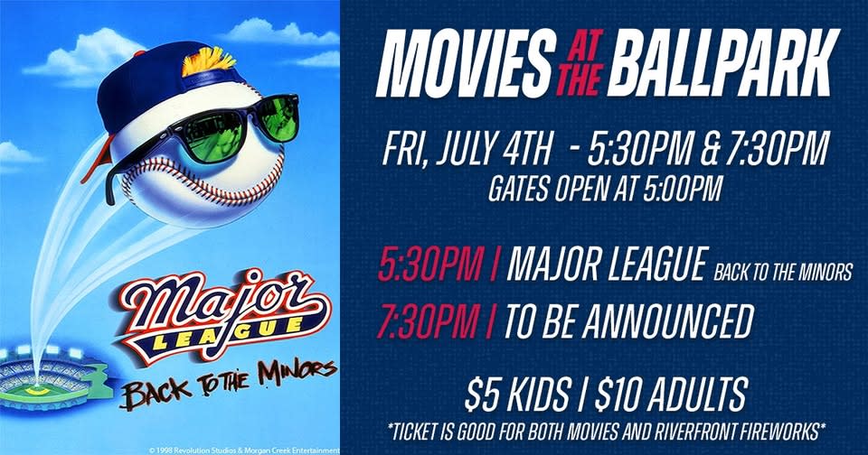 4th of July at Dozer Park! Grab your crew it’s gonna be a night to remember — don’t miss Movies at the Ballpark!