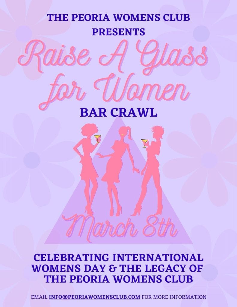 Join us March 8th, 6-9 PM in Downtown Peoria for a fun night out supporting the Peoria Women’s Club for International Women's Day! Your $25 ticket includes shuttle access, swag, and a bingo type game with prizes. Wear pink, bring friends (guys welcome!), and raise money for women!