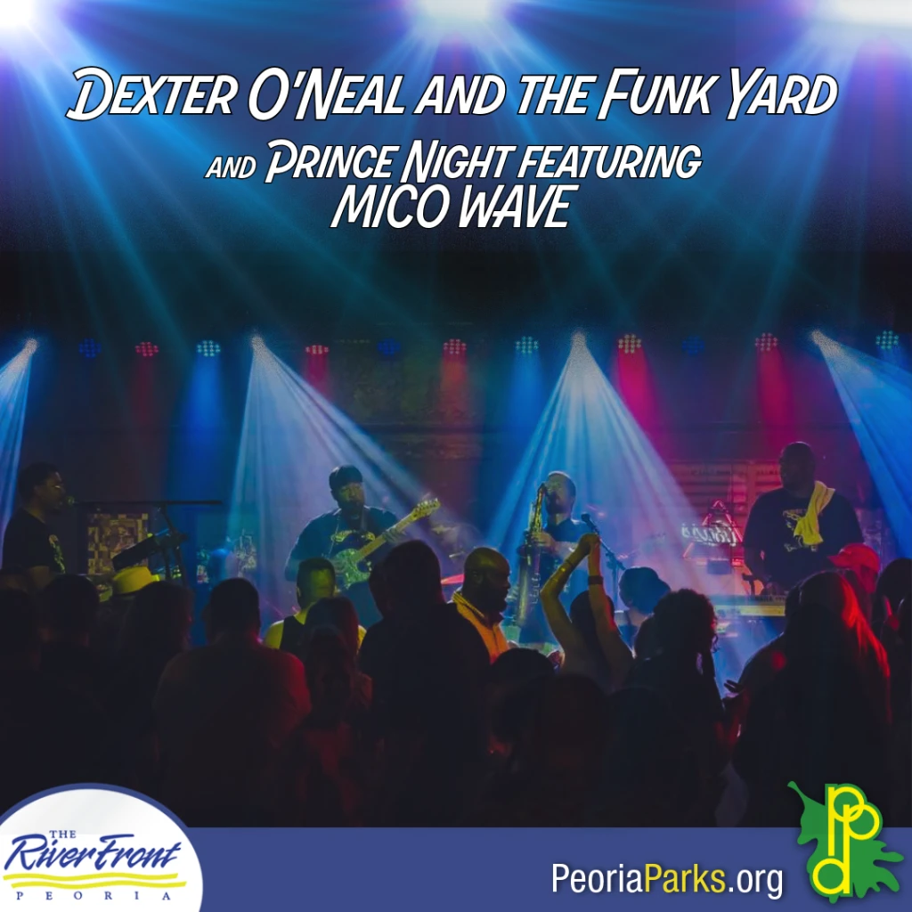 Join us for a summer concert featuring Dexter O’Neal and The Funk Yard, the Midwest’s premier funk band, plus Peoria’s own Prince Tribute Band, Mico Wave, celebrating the music of the iconic artist.