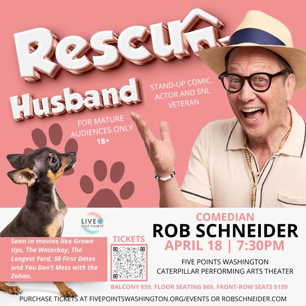 Purchase Tickets HERE: https://www.eventbrite.com/e/rob-schneider-rescue-husband-tickets-1105632519629?aff=oddtdtcreator