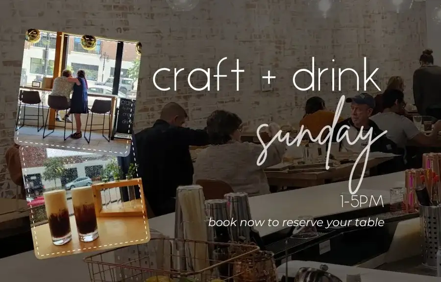 Join us for a craft and drink session! Make something awesome by selecting one of our 20+ craft options. We offer leather, wood working, macrame, concrete, painting and more! Our Craftenders will guide you through customization options and assist you as you work. Order a cocktail, mocktail, beer or wine from our craft cocktail bar. Everything is made from scratch and fifty cents from every drink sold goes to local charities - we have donated over $11,000 since 2020! Reservations recommended but walk-ins are welcome. See our full project and drink menus, as well as reservation options on our website.