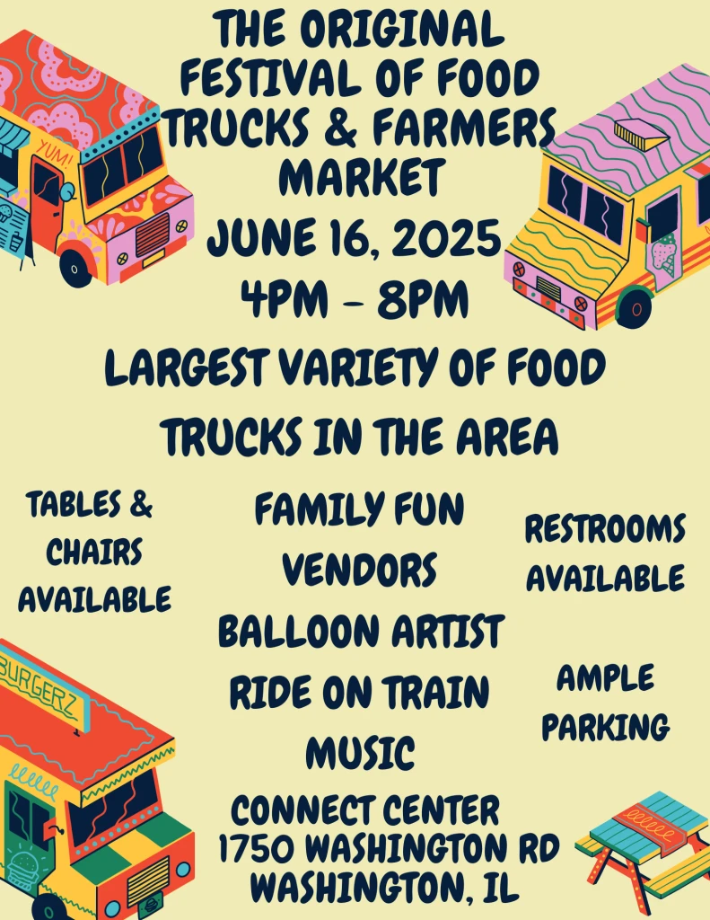 THE LARGEST VARIETY OF FOOD TRUCKS IN THE AREA WILL BE SET UP FOR BUSINESS. WE WILL HAVE TABLES & CHAIRS WILL BE SET UP OR BRING YOUR OWN & HAVE A GOOD TIME. WE WILL ALSO HAVE VENDORS SELLING SOME NICE THINGS. A FARMERS MARKET INCLUDING FRESH BEEF & FRESH LOCAL HONEY. BALLOON MAN, FACE PAINTER, RIDE ON TRAIN & MUSIC BY ROY FIFER. LARGE PARKING LOT. COME OUT & ENJOY A EVENING OF DELICIOUS FOOD & FUN FOR ALL AGES!!!!