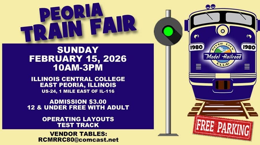 The Peoria Train Fair returns to the ICC East Peoria campus for a full day celebrating model railroading and railroad history! Sponsored by Pekin’s River City Model Railroad Club, this popular annual event offers something for hobbyists, collectors, families, and anyone curious about trains.