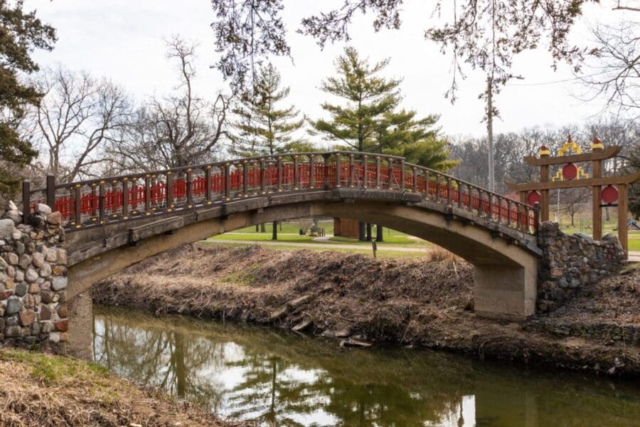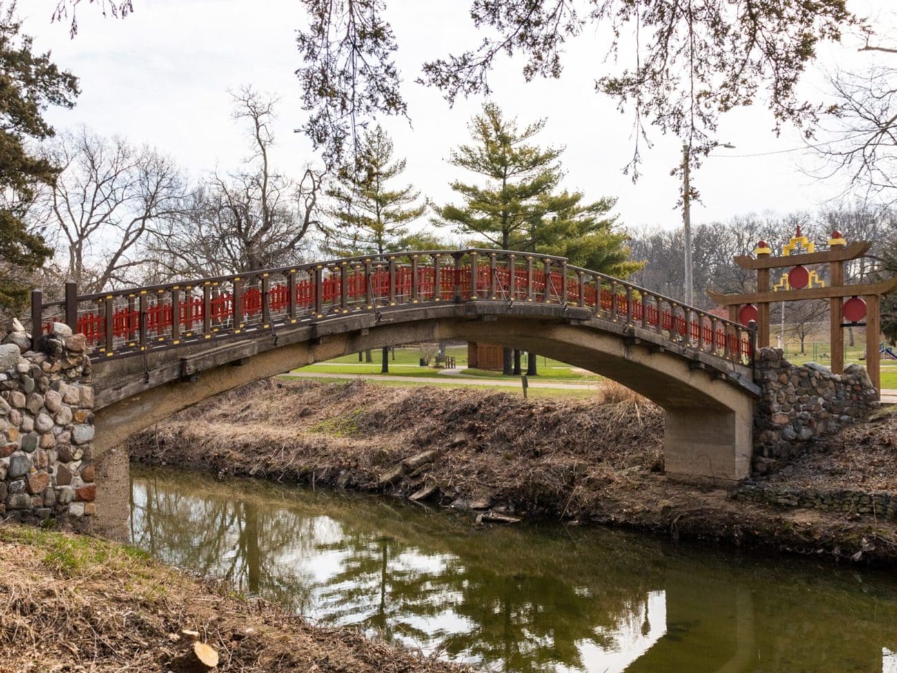 This large park, located adjacent to Bradley University, was established in the late 19th century. Filled with amenities that will appeal to dog lovers and sports fans alike, the park traverses a high bluff woodland that grades down into the floodplain of Dry Run Creek. Along with numerous picnic sites, the park also features a beautiful Japanese bridge. The roads through Bradley Park provide paved, but not so level hiking opportunities. If you have questions about rentals at this park, please call 309-682-1200. Amenities -Baseball Field(s) -Corn Stock Theatre -Disc Golf Course -Dog Parks -Horseshoe Pit -Office -Pets Welcome -Picnic Table(s) -Playground(s) -Public Restroom(s) -Rentals -Sand Volleyball Courts -Shelter(s) -Sled Hill -Tennis Court(s) -Trails/ Hiking