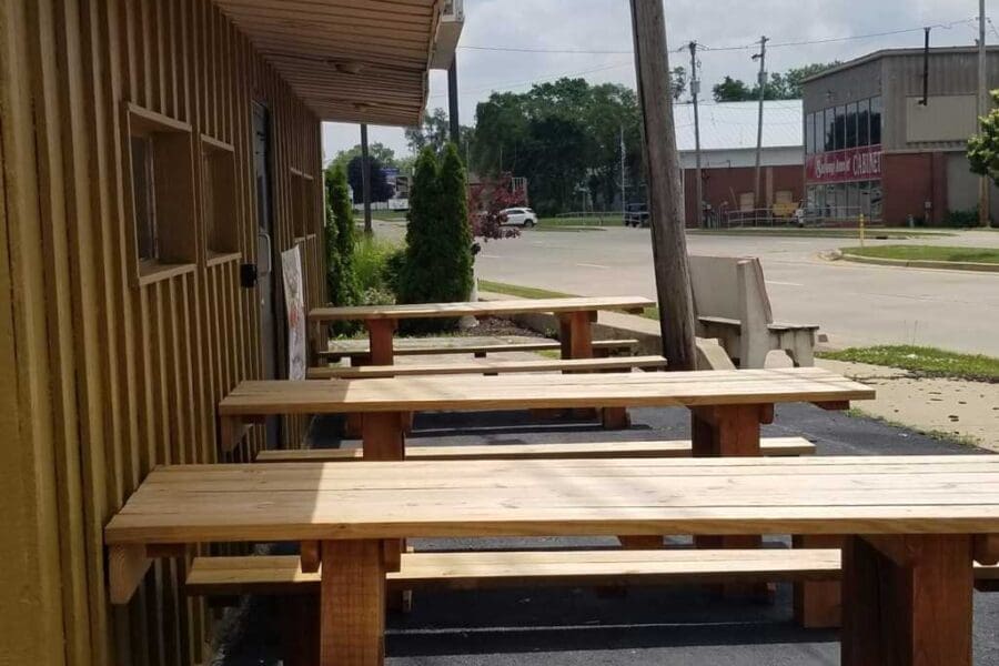 Biker bar in Washington, IL, with dine-in and outdoor seating, and slot machines for your amusement.