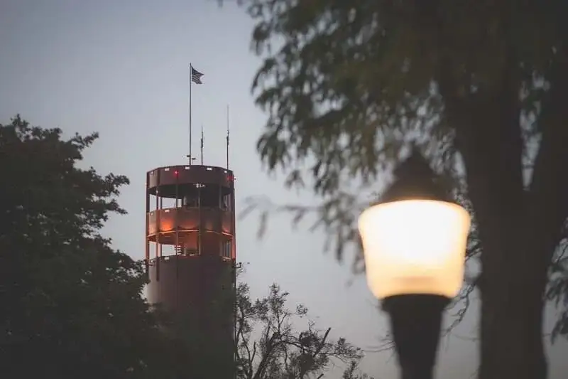 Glide 200 feet to the top of the tower in our enclosed glass elevator to "View the Wonder" for many miles of the Illinois River Valley. On top of 500,000 gallons of clean, pure well water, there are three separate observation decks designed to provide a spectacular panorama in all directions. There are three telescopes available for even closer viewing. This structure is the only one of its kind in the U.S.A. The Observation Tower is open from the last part of April through October (weather permitting).