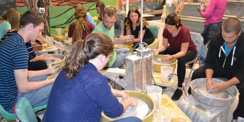 Wheel Art Pottery is a pottery business located in Peoria's Historical Warehouse District. We offer memberships for those who can work independently in ceramics, pottery classes and workshops. We provide opportunity for birthday parties and other special events. Our Gallery offers pottery for sale created by the owners and members. We also participate in Peoria's First Fridays art studio tours. Bus tours and groups are always welcome by appointment.